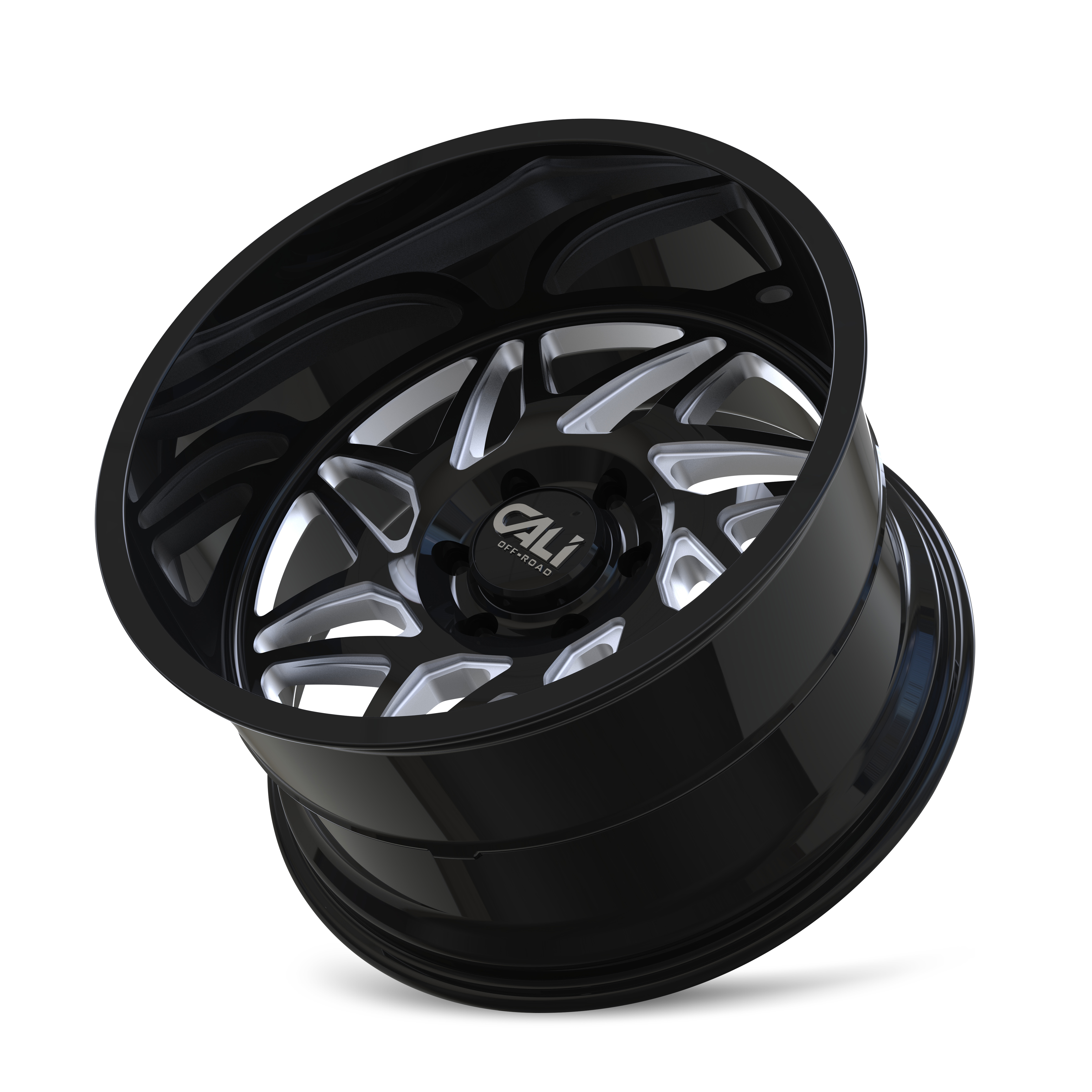 Buy Cali Off-road GEMINI Gloss black milled 24x14 -76 6x139.7mm 106mm (SKU: 9112-24483BM) wheels online, shipped straight to your door.